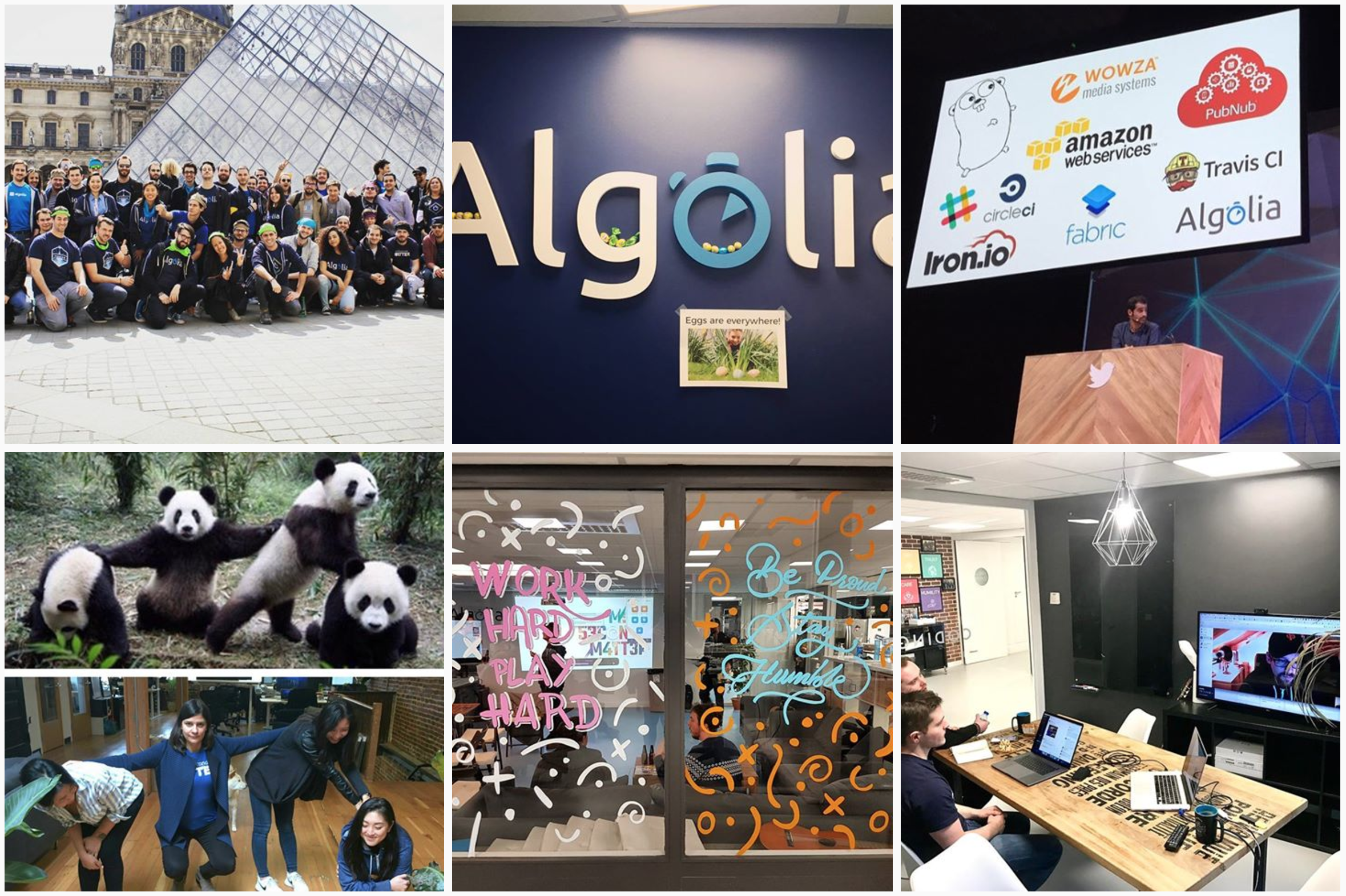 At Algolia, tech and non-tech profiles are on the same boat and show respect for and interest in one other. The engineers care about the business and the customers. They are all working on the support alternately. Marketing and Sales are trained to have a deep understanding of the product and contribute to engineering feature specs giving constructive feedback. We take full advantage of Slack, shared documents, and video calls to work collaboratively. We also encourage everyone at the company to travel at least once a year to visit and work from a different office. For example, as an engineer in Paris, you might work face-to-face with your peers in the San Francisco office for a few weeks. Traveling and working from a different space with different people offers inspiration and a tremendous amount of perspective. Plus, it’s always really fun to get to know your colleagues in different cities!